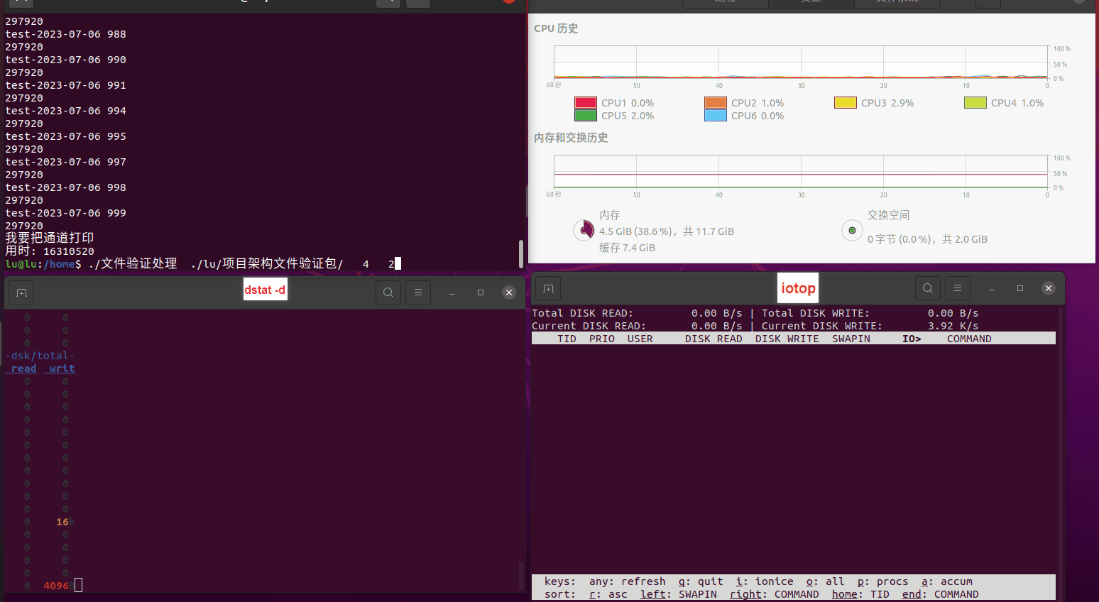 读任务线程池最大线程数量 解析任务线程池最大线程数量 最终用时(us) 1 1 33684140 2 1 16304544 3 1 16236443 4 1 16310520 4 2 9250718 4 3 9350257 4 4 9403874 3 3 11490599 5 5 8993891 6 6 8039352 7 7 7769768 8 8 7682735 9 9 8023354 10 10 7713602 13 13 7588479 17 17 7334632 20 20 7425200 50 50 7728117 200 200 11087723 500 500 超出系统资源限制触发保护(多次测试均终止于次,因此此无后续数据) tmpfs组: