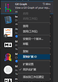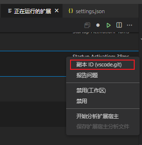 Ctrl+Shift+X转到)打开后,右键某个扩展后,点击复制扩展 ID获取