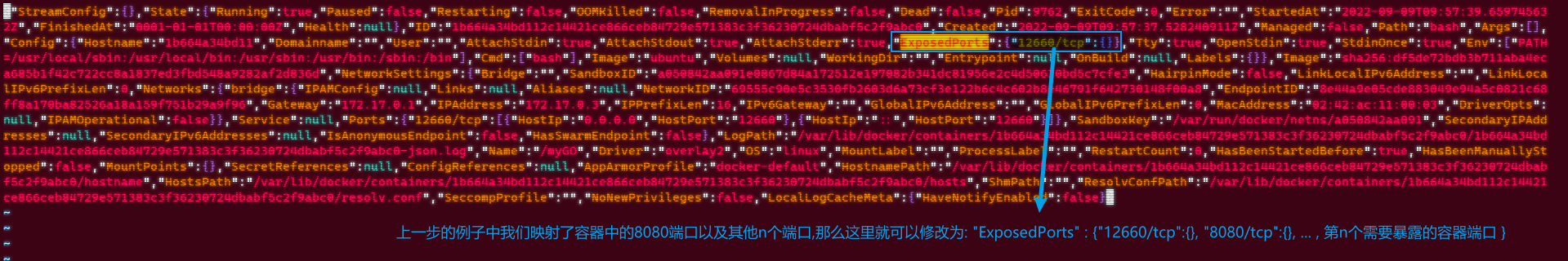 vim 容器id/config.v2.json-> 暴露容器参与映射的端口![]()