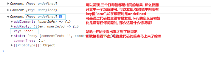 可以先观察下下面这段脑残代码的问题(点击下图放大观看)接下来运行代码后, 看下这段代码中所显示的三处控制台'log函数'对this的打印结果那么揭晓答案: 问题不在于key,更不在于这三个函数的定义; 而是在于stats这个字段的定义 -- 由于其初始化没有经过构造函数才引起了这个现象, 而我们调用log打印的三个函数又偏偏都是经stats主机调用的, 因此都会出现这个现象。(而其他正常调用的情况下, key不会出现undefine的现象 -- 比如从外部类实例来调用这些函数)