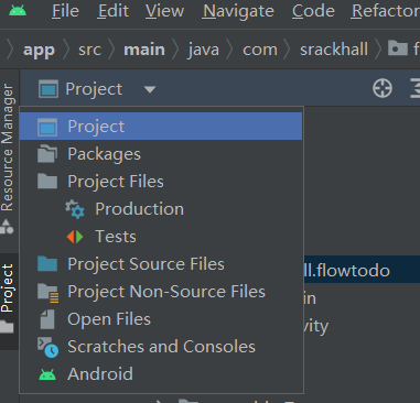 Android, 但是此模式下会隐藏很多文件, 因此我们在必要的时候需要使用Project模式。如下图: