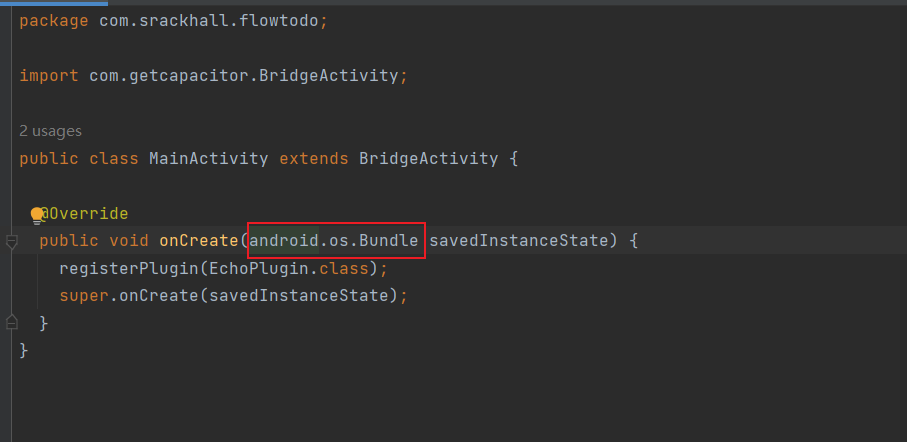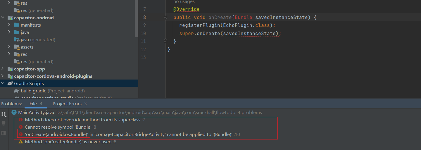 ‘onCreate(android.os.Bundle)’ in ‘com.getcapacitor.BridgeActivity’ cannot be applied to ‘(Bundle)’