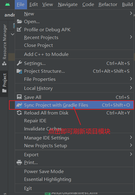 那么接下来, 我们只要刷新项目, 以加载我们刚刚为项目做的配置, 即可在android原生中正常调用使用我们的go函数了。刷新方式如下图: