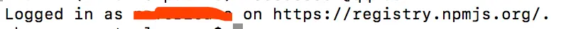 最后一行显示登录信息,as 后面是用户名。on 后是源地址,如果不是https://registry.npmjs.org/,比如是淘宝源,请切换。可以参考https://segmentfault.com/a/11...