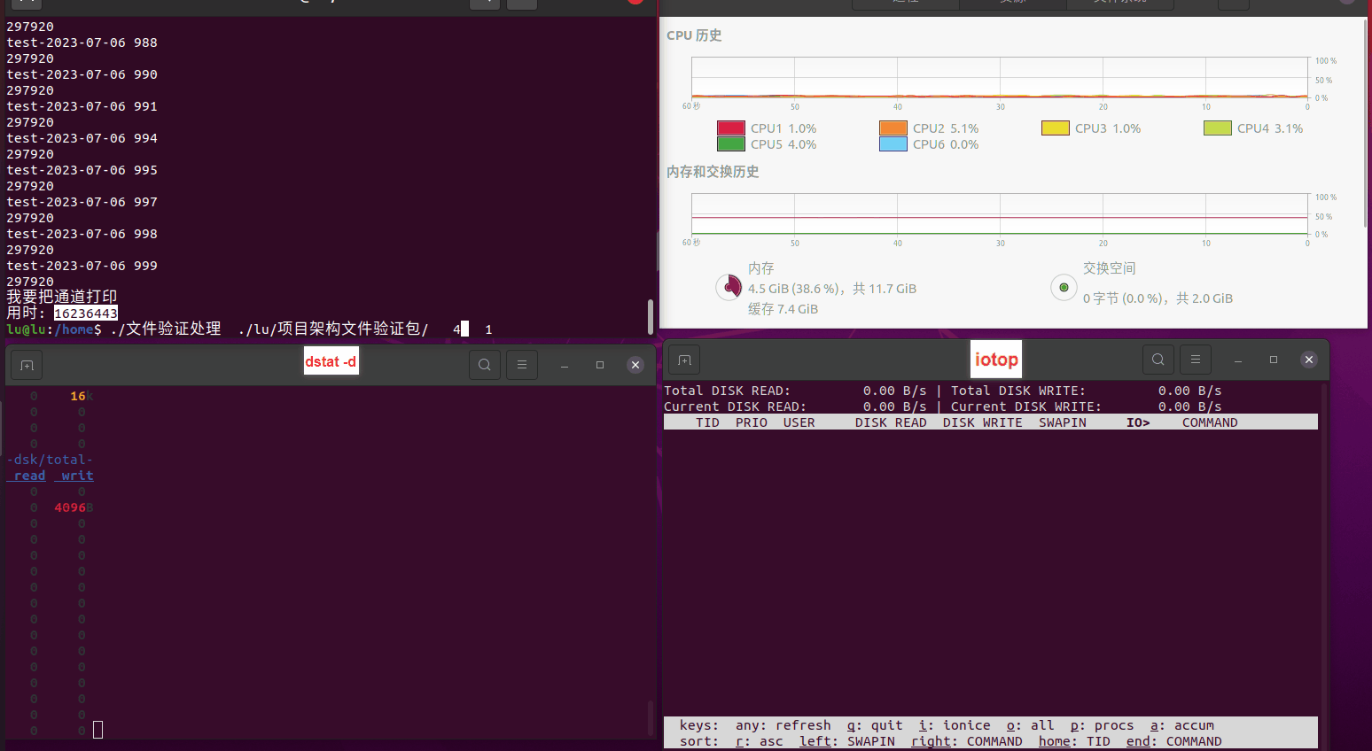 读任务线程池最大线程数量 解析任务线程池最大线程数量 最终用时(us) 1 1 33684140 2 1 16304544 3 1 16236443 4 1 16310520 4 2 9250718 4 3 9350257 4 4 9403874 3 3 11490599 5 5 8993891 6 6 8039352 7 7 7769768 8 8 7682735 9 9 8023354 10 10 7713602 13 13 7588479 17 17 7334632 20 20 7425200 50 50 7728117 200 200 11087723 500 500 超出系统资源限制触发保护(多次测试均终止于次,因此此无后续数据) tmpfs组: