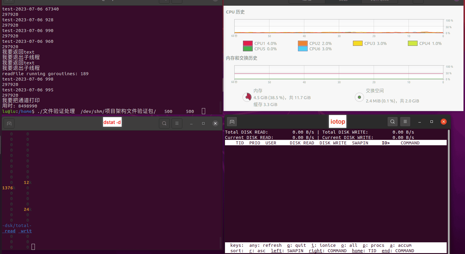 使用相同测试包和代码段2,越 4.8G, 分别在磁盘组 和 tmpfs组, 进行对照实验。