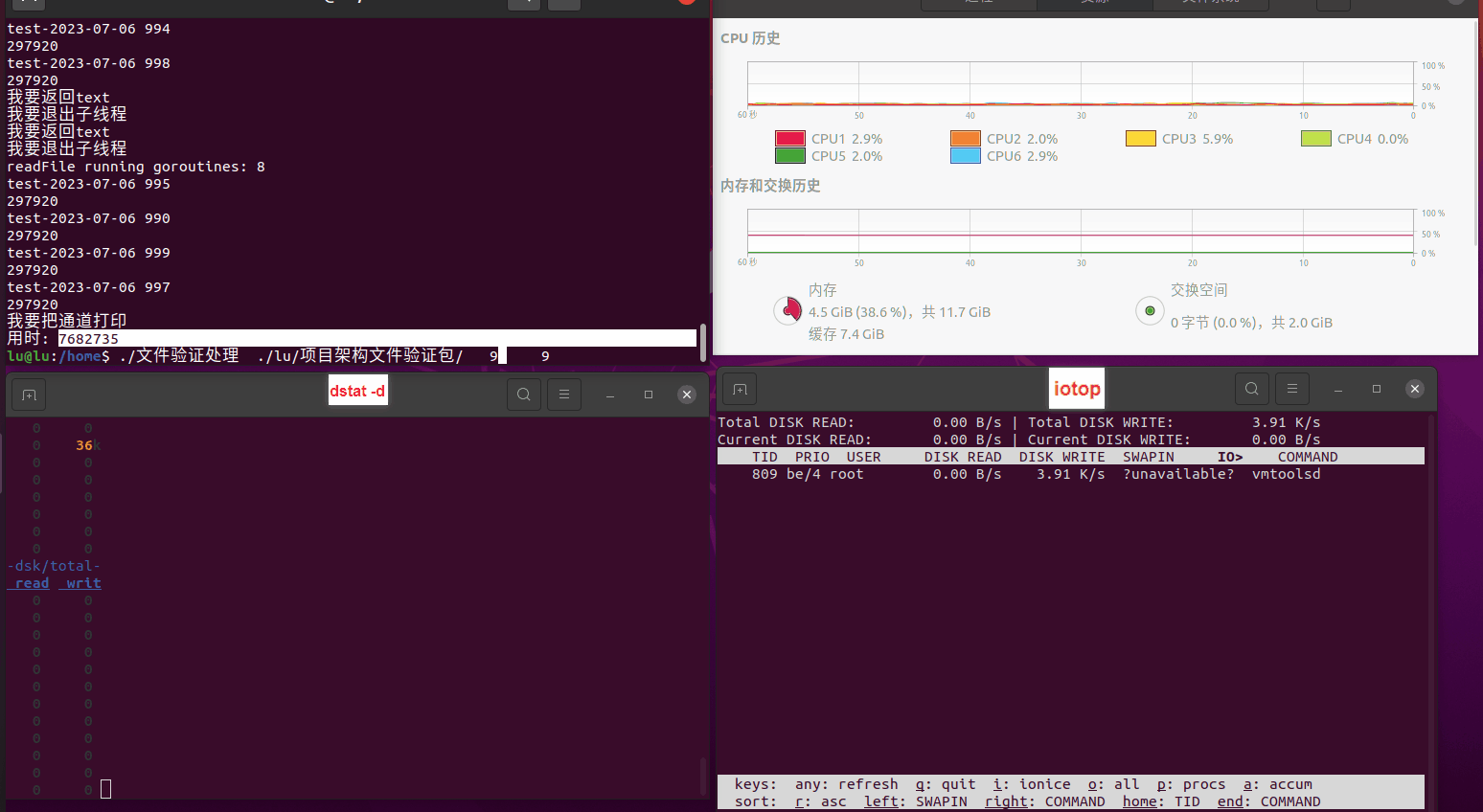 读任务线程池最大线程数量 解析任务线程池最大线程数量 最终用时(us) readFile running goroutines 1 1 49289772 2 1 16383011 3 1 16276925 4 1 16273180 4 2 9405793 4 3 9802486 4 4 9638508 3 3 11126555 5 5 8703486 6 6 7987047 7 7 7818355 8 8 8024058 9 9 7554108 10 10 7965352 13 13 7714339 17 17 7680062 20 20 7579025 50 50 7677506 200 200 8498990 500 500 8087618 1000 1000 7789153 322 5000 5000 7976342 383 10000 10000 8328148 300 50000 50000 9828172 116 80000 80000 15584471 202