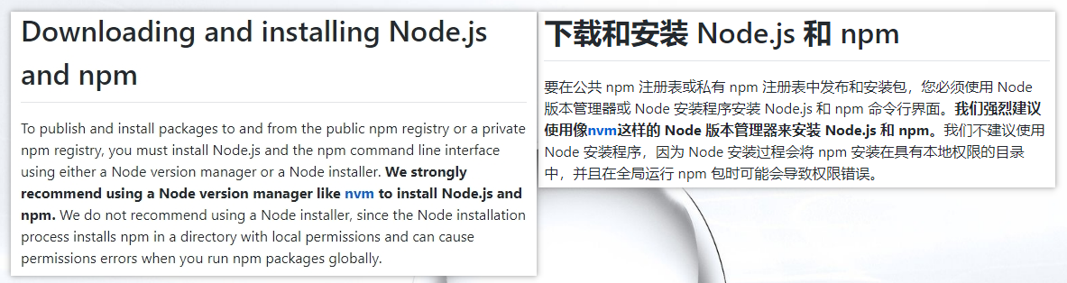 可以看出安装的配置有问题, 从npm官网可知, npm不建议通过Node安装程序来安装。