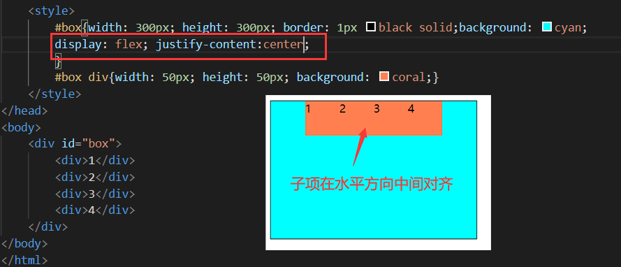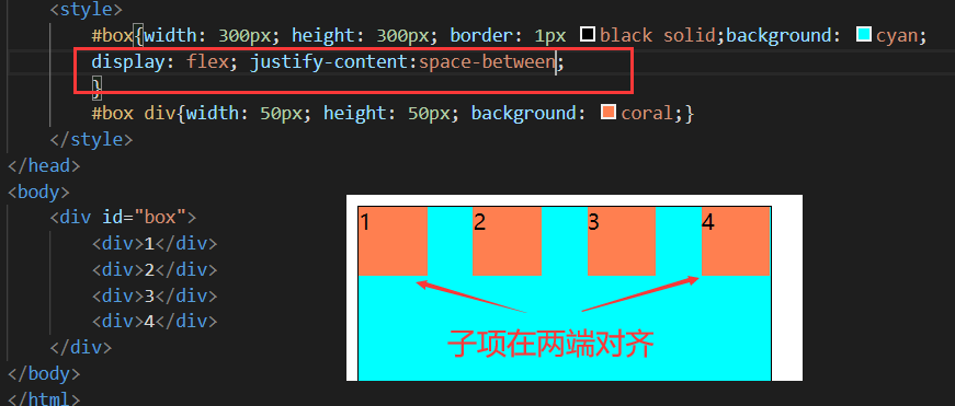 justify-content:属性 决定了主轴方向上子项的对齐和分布方式