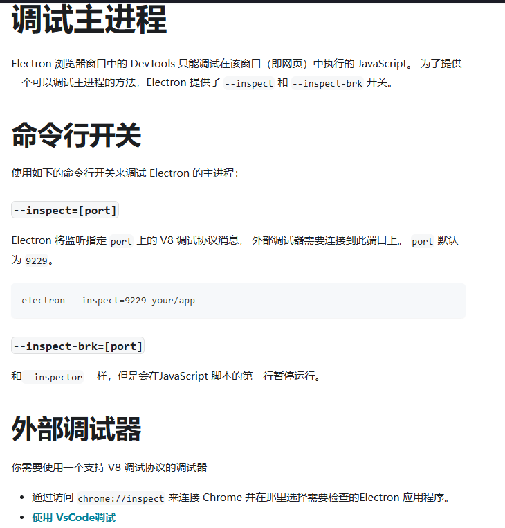 这里是electron官网关于此部分的描述, 调试主进程